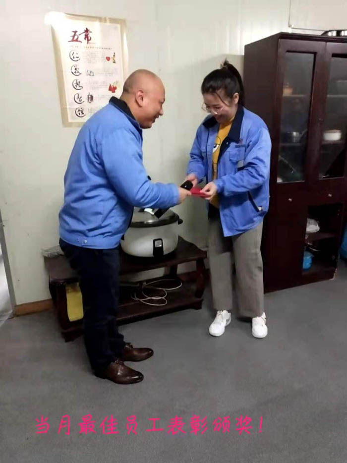 然后,总经理熊总给两位矜矜业业的三思家人颁“当月出色员工表彰”奖,感激两位家人对三思的默默付出和无私奉献。