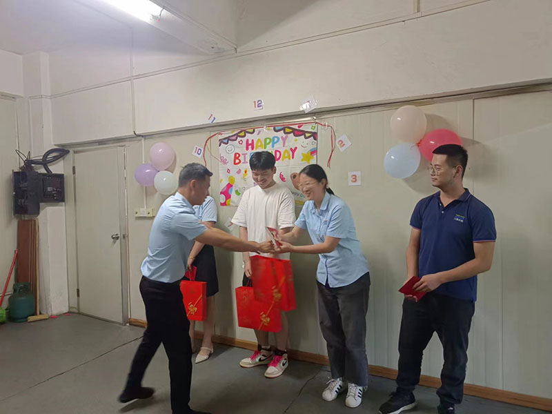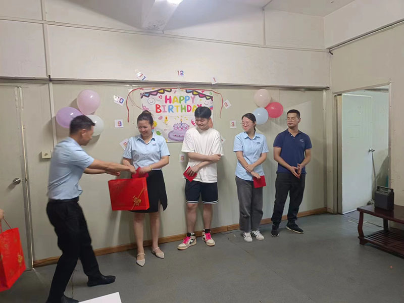 今天的生日会不仅准备好丰盛的晚餐,还有精美的生日礼物。有请李总为寿星们送上生日礼物!